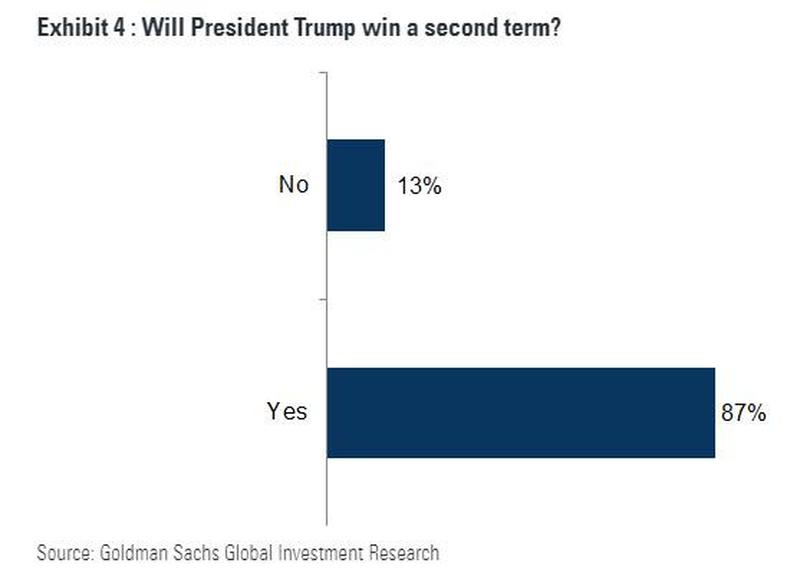A whopping 87% of Goldman Sachs clients believe that President Trump will win reelection this year.