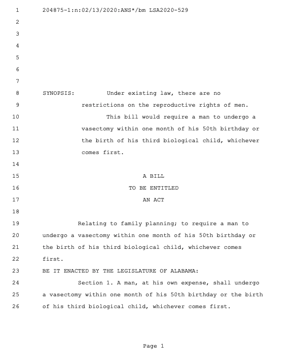 Democrats in the Alabama legislature last year brought up the possibility of introducing such a bill during the abortion debate on 2019’s HB 314, known as the Human Life Protection Act.